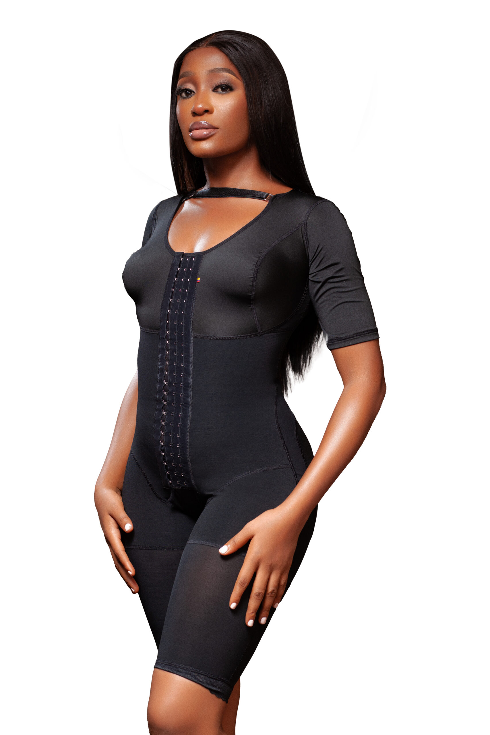 • Upper Body Control: Built-in bra and sleeves provide additional coverage and support